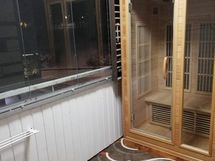 Eteisessä ja kylpyhuoneessa on käytännöllinen laattalattia, ja oleskelutiloissa lämminsävyinen parketti. Asunnossa on lisäksi lasitettu parveke sekä oma infrapunasauna – harvinainen yhdistelmä tämän kokoisessa citykodissa.