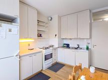 Asunnossa on erillinen keittiö. Asunnon kylpyhuone on kaakeloitu ja siellä on valmiina pyykinpesukone asukkaan käytettävissä.