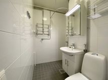 Varusteet: suihku, peilikaappi, allaskaappi, pesukoneliitäntä, WC