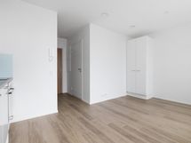 Moderni yksiö keskustan ytimestä! Ikkunoista on maisema kaakon suuntaan. Keskustan palvelut ovat hissimatkan päässä. Tästä kodista löytyy pieni eteinen ja kodin keittiö ja olohuone muodostavat avoimen kokonaisuuden. Keittiön kaapisto ja välitila on väriltään raikas ja helppo pitää puhtaana. Keittiötilasta löytyy kaksilevyinen induktio liesi vapauttaen käyttöön tasotilaa sekä kalusteuuni. Jääkaappi ja astianpesukone on integroitu sisutukseen ja pienelle mikrolle löytyy oma tila. Kaunis ruskeanharmahtava vinyylilankkulattia on helppohoitoinen. Kylpyhuoneen sisustus jatkaa kodin vaaleaa linjaa valkoisine kalusteineen. Lattiassa on mukavuuslämmitys ja värillinen laatoitus antaa kivan kontrastin kylpyhuoneen valkoiselle värimaailmalle. Pyykinpesukoneelle löytyy oma paikkansa.
