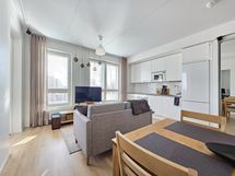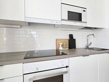Varusteet: jääkaappipakastin, astianpesukone. Liesi: induktioliesi, mikroaaltouuni