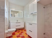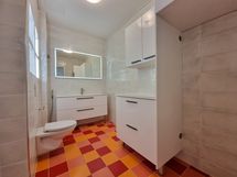 Varusteet: WC, suihku, pesukoneliitäntä, peilikaappi, allaskaappi