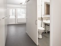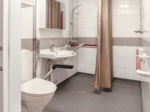 Varustus: pesukoneliitäntä, lattialämmitys, wc-istuin, suihku, peilikaappi, kiinteät valaisimet.