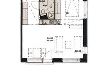 Liesi: keraaminen, erillisuuni. Työtasot: metalli. Kylmäsäilytys: jääkaappi/pakastin. Varustus: liesikupu, astianpesukone, kiinteät valaisimet.