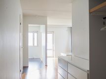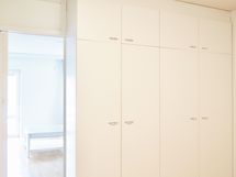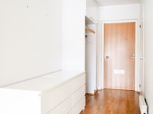 Eteisessä vaatehuone, talossa huoneistokohtainen kellarikomero.