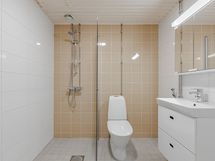 Arkea sujuvoittavat keittotilan laadukkaat kodinkoneet, joihin lukeutuvat keraaminen liesi, erillisuuni, astianpesukone ja jääkaappipakastin. Laatoitetussa kylpyhuoneessa on liitäntä asukkaan omalle pyykinpesukoneelle. Kylpyhuoneessa jalat pitävät lämpimänä mukavuuslattialämmitys. Asunnossa on ranskalainen parveke.