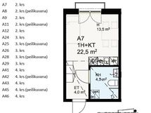 1kk:n vuokran suuruinen