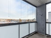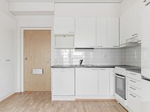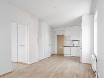 Vuonna 2016 valmistuneessa kerrostalokodissa on avara pohjaratkaisu. Asunnossa on laminaattilattia ja valkoisiksi maalatut seinät. Keittiössä on modernit valkoiset kaapistot sekä harmaa taso.