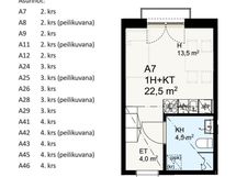 Vuonna 2019 valmistuneessa kerrostalokodissa on avara pohjaratkaisu. Asunnossa on laminaattilattia ja valkoisiksi maalatut seinät.