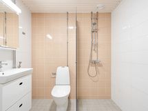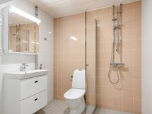 Asunnon pintamateriaaleihin on valittu Klassinen-teeman mukaisia pehmeitä ja luonnonläheisiä sävyjä, jotka luovat kauniin pohjan sisustuksellesi. Tehosteseinä luo kotiin lämpimän tunnelman vaalean keittiön parina. Kultaiset vetimet kruunaavat kokonaisuuden.