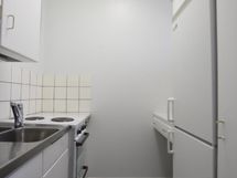 Liesi: sähköliesi. Työtasot: laminaatti, metalli. Kylmäsäilytys: jääkaappi/pakastin.