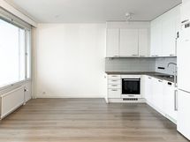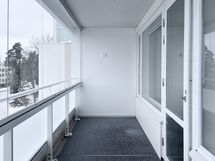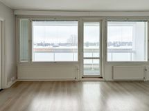 Luonnonvaloa tulvii asuntoon leveän ikkunarivin ansiosta koko huoneiston leveydeltä. Avoin keittiö- ja olohuonetila avautuu eteisen jälkeen yhtenäisenä kokonaisuutena, jonka voi sisustaa helposti sekä oleskeluun että ruokailuun. Koko tilan levyinen lasitettu parveke avautuu talon rauhalliselle sisäpihalle. Makuuhuoneessa on hyvänkokoinen vaatehuone tuomaan lisää säilytystilaa.