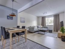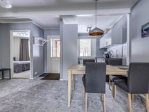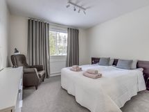 Moderni yhden tason huoneisto neljälle. Huoneisto remontoitu kauttaaltaan 2021! Täysin varustellun avokeittiön ja olohuoneen yhteydessä on neljän hengen ruokailuryhmä. Kaksi skandinaavisesti sisutettua makuuhuonetta laadukkain parisängyin hyvillä patjoilla takaavat hyvät unet. Keskiyön aurinko ei häiritse kiitos pimennysverhojen. Toisessa makuuhuoneessa on työpiste etätyöskentelyyn.