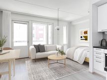 Valokuvat havainnekuvia vastaavanlaisesta asunnosta. Kalustetut kuvat digitaalisesti toteutettu.