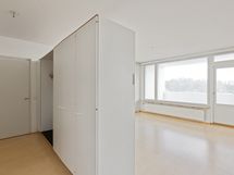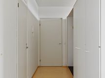 - Eteisessä kaapistot, parkettilattia ja maalatut seinät.