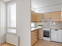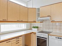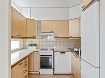 - Liesi: keraaminen. Työtasot: laminaatti. Kylmäsäilytys: jääkaappi/pakastin. Varustus: astianpesukone, liesituuletin / hormi.
