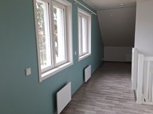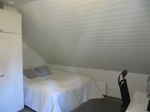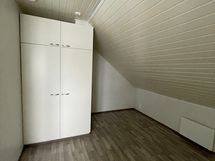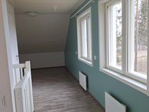 Yläkerrassa osin matalaa tilaa, jota ei lasketa virallisiin neliömääriin. Yläkerran huone jaettavissa kahdeksi huoneeksi.