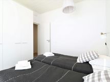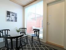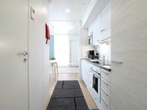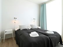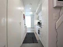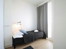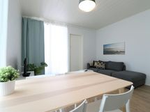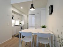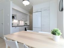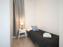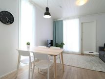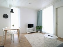 A stylish two-bedroom apartment that is furnished for four people. Here you can live comfortably and flexibly for as long as you want. Everyday chores can all be done conveniently in your own apartment, and the kitchen is also equipped with healthy food preparation in mind every day. There are parking spaces in the yard and public transportation is a few hundred meters from the site.