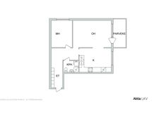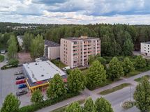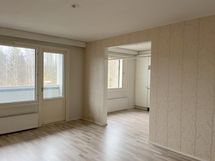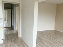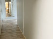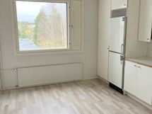 - Kaapistot, sähköliesi, astianpesukone ja jää/pakastinkaappi. Lattia laminaattia.