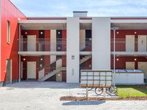 This three-story building with five stairwells features external corridors with elevator access. The apartments range in size from 40.5 to 83.5 square meters, with layouts from two to four rooms plus kitchen/kitchenette, catering to a variety of households. Pets are welcome. The apartments are finished with stylish and durable materials, such as laminate flooring. Each apartment has a balcony and a storage unit, with ground-floor apartments also featuring their own private yard. Some apartments include a private sauna. Residents have access to shared amenities, including a sauna, laundry room with drying facilities, communal room, storage for outdoor equipment, and stroller storage. All apartments are fully accessible.