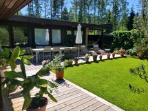 Furnished house surrounded by nature with large garden and terrace outside in Luoma, Kirkkonummi. Carport for 2 cars. Rented for at least 4 months at a time. Rent includes water usage and renter makes own electricity contract for longer term rental.