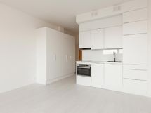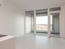 Tämän parvekkeellisen yksiön kauniit vaaleat pintamaaliratkaisut ja modernit kodinkoneet täyttävät nykyajan asumisen tarpeet.