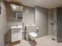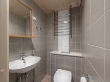 Large bathroom, separate wc and spacious clothes storage room add comfort to your daily life. The housing company is heated with economical and ecological geothermal heating.
