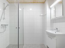 Kylpyhuoneessa tilavaraus omalle pyykinpesukoneelle. Kylpyhuoneessa varpaita lämmittää vesikiertoinen lattialämmitys. Kaappitilaa on asunnossa useamman kaapin verran. Asunnon iso lasitettu parveke palvelee mukavana lisä huoneena lämpimillä keleillä.
