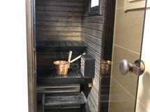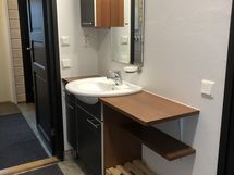 Alakerrassa on eteinen, makuuhuone, kylpyhuone (uusittu 2023), sauna, wc, kodinhoitohuone ja olohuone-keittiö.