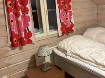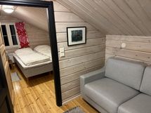 Sänkyjä on neljälle hengelle (jokainen sänky on 80 cm leveä), ja lisäksi yläkerran tasanteella on avattava 140 cm leveä sohva, johon mahtuu kaksi henkilöä nukkumaan.