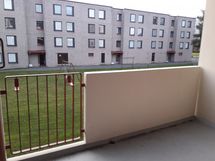 - Etelänpuoleiselta parvekkeelta näkymät taloyhtiön takapihalle.