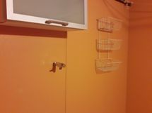 Huoneiston seinät maalattu ja lattioissa muovimattoa sekä pinnoiltaan hyvässä kunnossa. Kylpyhuoneen seinissä pirteää oranssia.