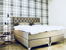 Valoisa kolmio 102,5 m2. Huonekorkeus yli 3 m. Sijainti keskustassa. Painovoimainen ilmanvaihto, paras mahdollinen. Huoneistossa alkuperäiset vanhan ajan vesikiertoiset lämpöpatterit, kiviset leveät ikkunalaudat ovat käytännölliset ja miellyttävät silmää. Huoneistossa kiiltävät kivilattia läpi koko asunnon. Avokeittiössä kotimaisen Topi-keittiön mattavalkoiset kalusteet integroiduilla Aeg:n kodinkoneilla. Makuuhuoneessa Topi-keittiön korkeat ( yli 2 m ) vaatekaapit. Keittiössä saarekkeen yläpuolella kirkaslasiset pyöreät retro -valaisimet ( 2 kpl ) sisältyvät vuokraan.