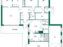 OMK 117 m2, 4h, k, 2xWC, takkahuone, pesuhuone, sauna.