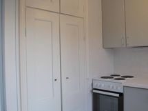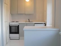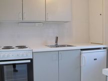 - Jääkaappi pakastelokerolla, sähköliesi, pesuallas, kaapistot.