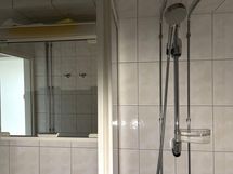 Kylpyhuone, suihku, suihkukaappi, peilikaappi, pesukoneliitäntä, lattialämmitys : mukavuuslämpö.