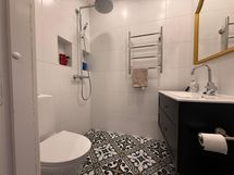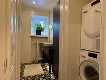 - Kylpyhuone: pyykinpesukone, kuivausrumpu, suihku, suihkuseinä, allaskaapisto, peili, pyyhepatteri. Erillinen wc: Peili, wc, allas. Toinen kylpyhuone: Suihku, peili, allaskaappi, wc, pyyhepatteri.
