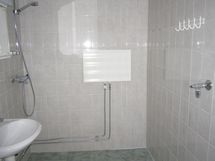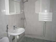 - Pesutilojen kuvaus: Peilikaappi, suihku, pesukoneliitäntä, seinät kaakeloitu, lattia kaakeloitu.