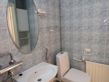 - Pesutilojen kuvaus: Suihku, pesukoneliitäntä, lavuaari, kaappitilaa, peili, wc. Lattia: laatta. Seinät: kaakeli.