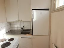 - Varustus: jääkaappi/pakastin, sähköliesi. Lattia: muovi. Seinät: kaakeli, maalattu.