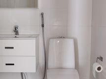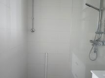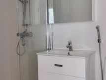 Varustus: suihkuseinä, pesukoneliitäntä, wc-istuin, suihku.