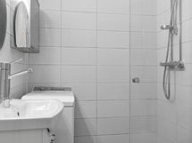 - Kylpyhuone, suihku, suihkuseinä, peilit, peilikaappi, pesukoneliitäntä, kiinteät valaisimet, rättipatteri (vesikiertoinen)
