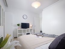 Käytössänne: uudet kodinkoneet, pyykinpesukone, astianpesukone, keittiö- ja ruoanlaittotarvikkeet, pyyhkeet, liinavaatteet (petattu valmiiksi), uudet kalusteet, fööni, hygieniatuotteet, kahvit/teet. Klaffipöydästä tulee kätevä työpöytä. Kaikki on uutta.