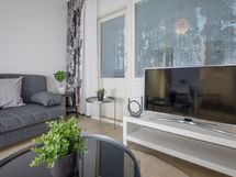 VAPAUTUU: 01.10.2025 Vuokrataan upea kalustettu remontoitu Kaksio 45m2 omalla parvekkeella, parkilla, omalla TV:lla molemmissa huoneissa, palvelujen lähellä: