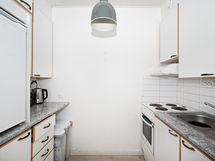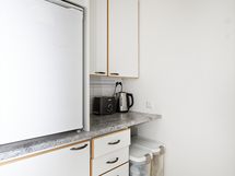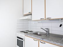 - Jääkaappi, sähköliesi, liesituuletin/ aktiivihiilisuodatin, kaapistot