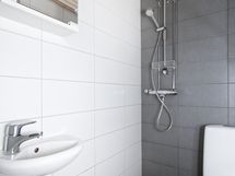 - Kylpyhuone, suihku, peilikaappi, lattialämmitys, kiinteät valaisimet