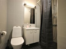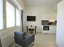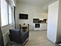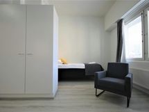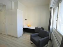 This compact room is for one. Room is equipped with flat screen-TV, electric kettle, coffee maker, toaster and a hairdryer. Well-equipped kitchen has equipment for cooking, refrigerator, freezer, microwave-oven, dishwasher and glass-ceramic stove. There is also private bathroom inside the room. Wi-Fi internet access, linen and final cleaning are always included in the price.