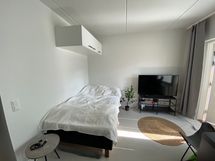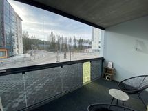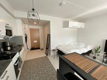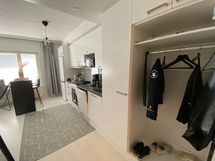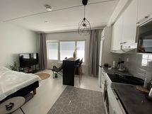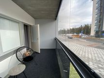 1.2.2026 vapautuva tasokas yksiö vuonna 2019 valmistuneessa talossa hyvien kulkuyhteyksien äärellä. Ensimmäisen asuinkerroksen huoneisto, jossa tilava lasitettu parveke ja näkymät lounaaseen. Kuvat otettu edellisen vuokrauksen yhteydessä.