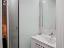 - Pesutilojen kuvaus: Jokaisessa huoneistossa on varaus pyykinpesukoneelle ja kuivausrummulle. Varustus: suihkuseinä, pesukoneliitäntä, lattialämmitys, wc-istuin, suihku, peilikaappi, kiinteät valaisimet.