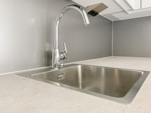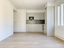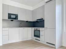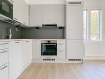- Liesi: induktio, erillisuuni, liesitaso. Työtasot: laminaatti. Kylmäsäilytys: jääkaappi/pakastin. Varustus: liesikupu, mikroaaltouuni, astianpesukone.